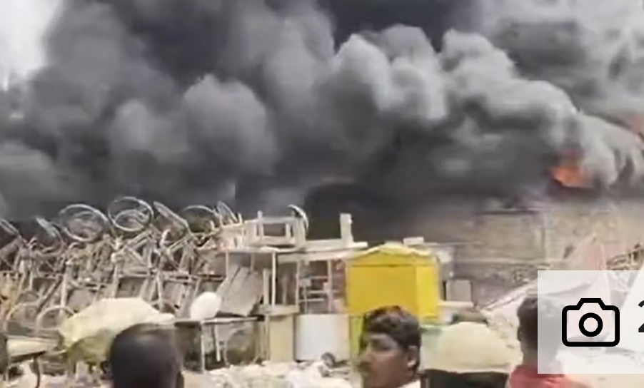 താഴ്ന്ന നിലയിലുള്ള ടിൻ-ഷെഡ് ൽ തീ പടർന്നപ്പോൾ, ഇടതൂർന്ന കെട്ടിടങ്ങൾക്ക് മുകളിൽ കറുത്ത പുകയുടെ കട്ടിയുള്ള നിരകൾ ഉയരുന്നത് സംഭവസ്ഥലത്തു നിന്നുള്ള ദൃശ്യങ്ങളിൽ കാണാം.