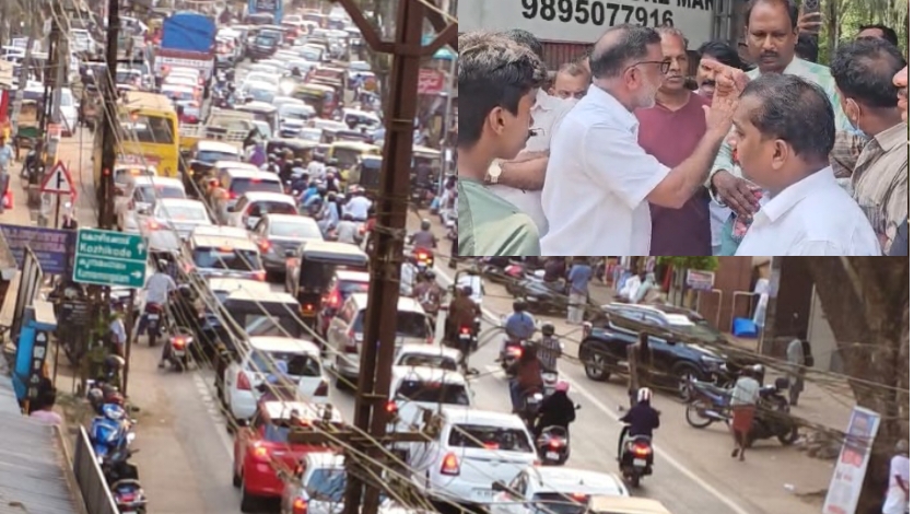 ഗതാഗതക്കുരുക്കിൽ വീർപ്പു മുട്ടി യ കുറ്റിക്കാട്ടൂർ ടൗണിനെ ശ്വാസം മുട്ടിച്ച് പൊതുമരാമത്ത് വകുപ്പ്. പ്രതിഷേധിച്ച് വ്യാപാരികൾ