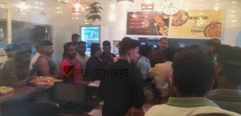 വിദേശ സർവ്വകലാശാലയ്ക്ക് സമീപം പ്രവർത്തിച്ചുവന്നിരുന്ന ഹോട്ടലിന് നേരെയാണ് അതിക്രമം ഉണ്ടായത്. സംഭവത്തിൽ ഹോട്ടലുടമകളുടെ പരാതിയിൽ പൊലീസ് കേസെടുത്തു. പിന്നാലെ ബജരംഗ് ദൾ പ്രവർത്തകർ പൊലീസ് സ്റ്റേഷൻ ഉപരോധിച്ചു.
