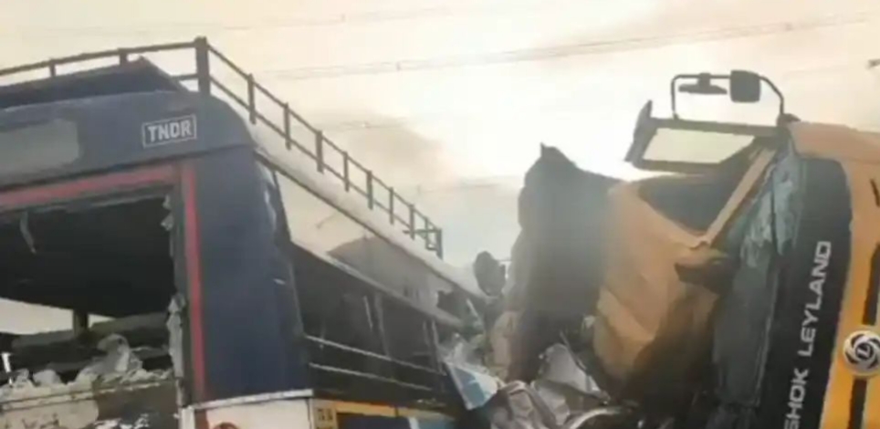 തെലുങ്കാന :വികരാബാദ് ജില്ലയിലെ ചെവെല്ലയ്ക്കടുത്ത് ചരല് ലോഡുമായി വന്ന ടിപ്പർ ലോറി സർക്കാർ ബസില് ( ടിആർടിസി) ഇടിച്ച് മറിഞ്ഞ്ല ഡ്രൈവർ അടക്കം 24 മരണം.