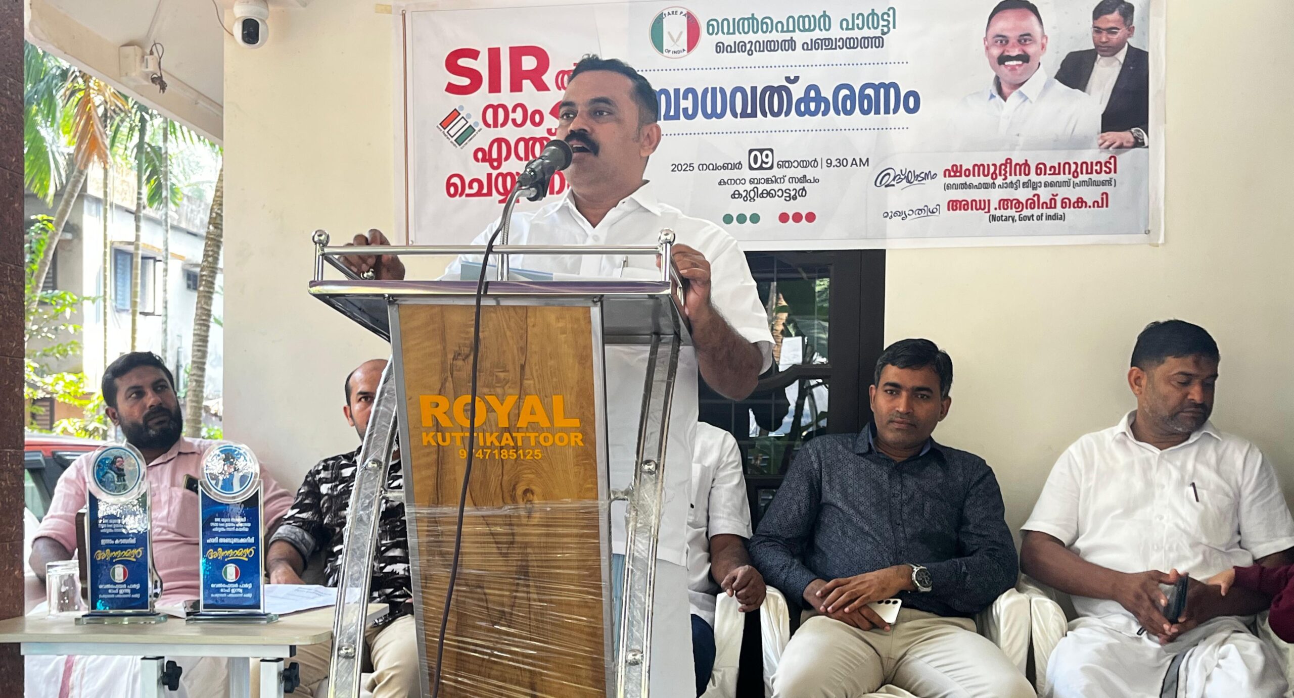 വെൽഫെയർ പാർട്ടി പെരുവയൽ പഞ്ചായത്ത് കമ്മിറ്റികുറ്റിക്കാട്ടൂർ സംഘടിപ്പിച്ച എസ്ഐആർ ബോധവൽക്കരണ പരിപാടി ഉദ്ഘാടനംചെയ്ത് സംസാരിക്കുകയായിരുന്നു അദ്ദേഹം പഞ്ചായത്ത്പ്രസിഡണ്ട് ടി.പി. ഷാഹുൽ ഹമീദ് അധ്യക്ഷത വഹിച്ചു