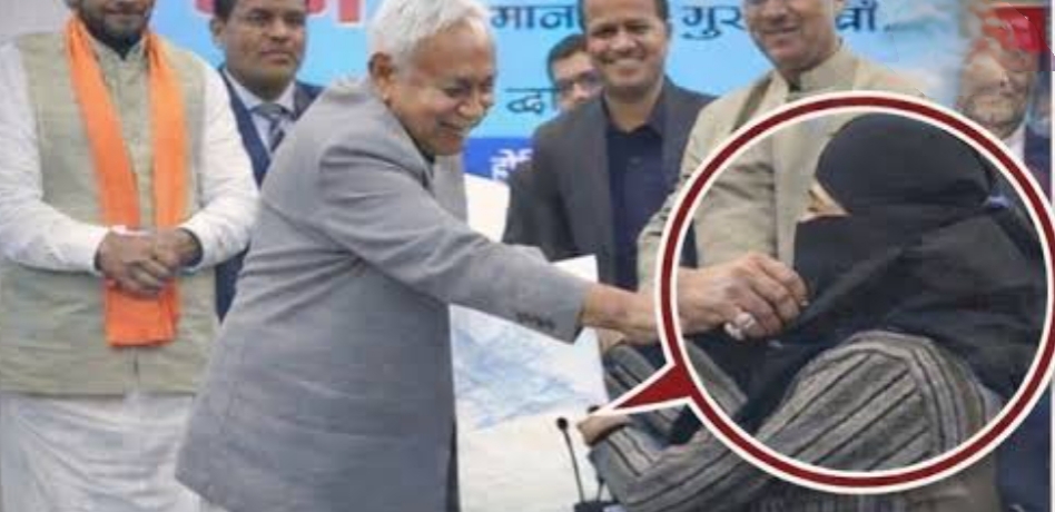 മുഖ്യമന്ത്രി നിധീഷ് കുമാർ നിഖാബ് ഊരി മാറ്റി, അപമാന ഭാരം താങ്ങാൻ കഴിയാതെ പർവീൺ ജോലി ഉപേക്ഷിക്കുന്നു.