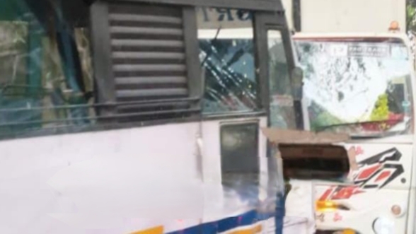 താമരശ്ശേരി ചുരത്തിൽ കെ.എസ്.ആർ.ടി.സി. ബസ്സും കണ്ടെയ്നർ ലോറിയും കൂട്ടിയിടിച്ച് അപകടം; ഭാഗിക ഗതാഗത തടസ്സം