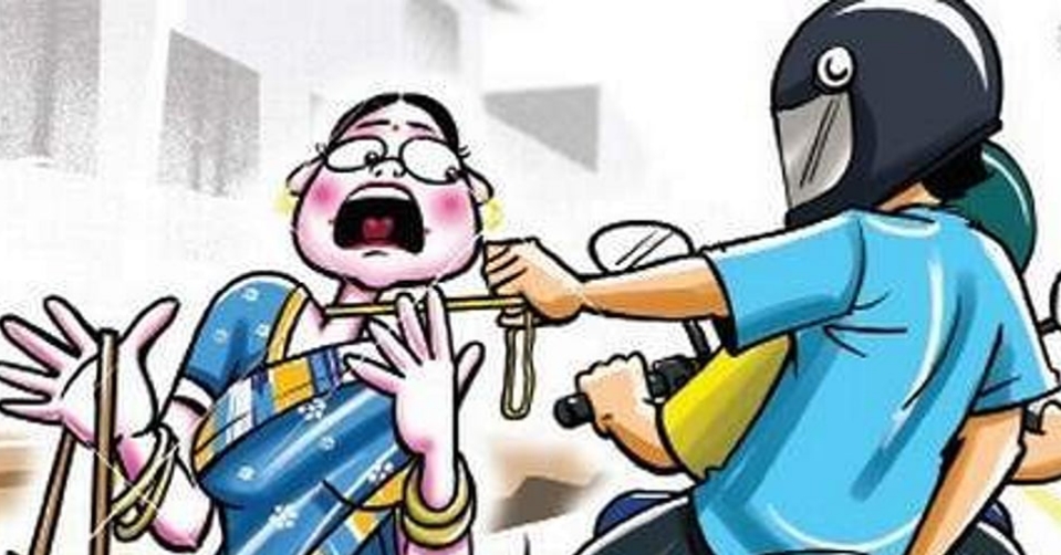 മോട്ടോർ ബൈക്കിൽ എത്തിയ അക്രമികൾ  സ്ത്രീയുടെ കഴുത്തിൽ നിന്നും സ്വർണ്ണ ചെയിൻ  പിടിച്ചു പറിച്ചു കടന്നു കളഞ്ഞു